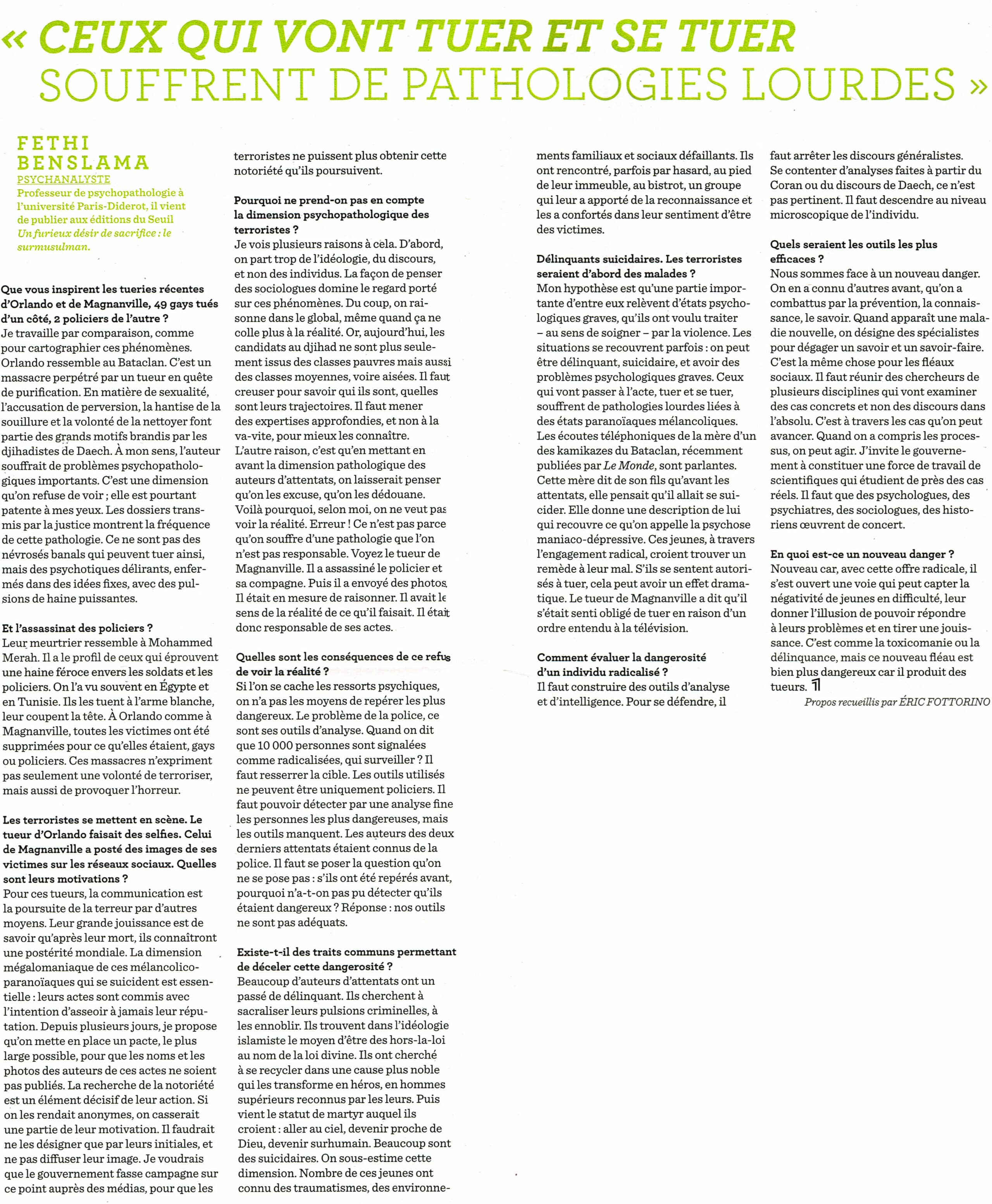 « Ceux qui vont tuer et se tuer souffrent de pathologies lourdes », Fethi Benslama