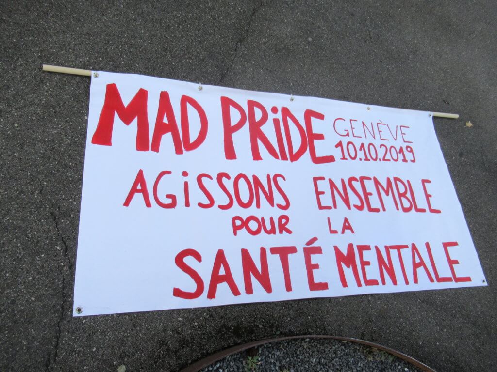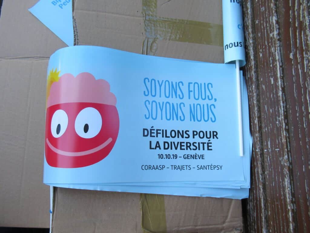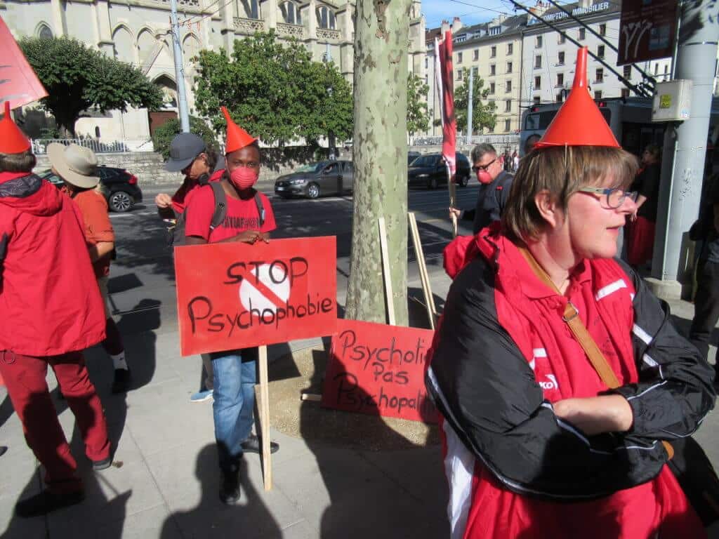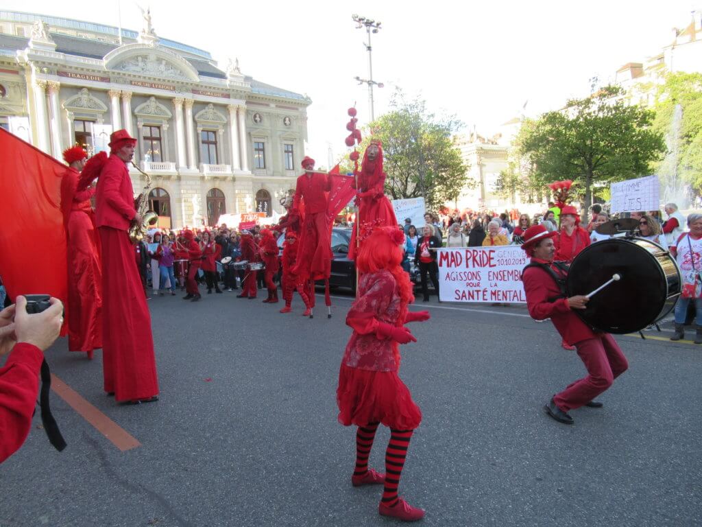 Plus d’un millier de PSYtoyens suisses et quelques infiltrĂ©s français ont dĂ©filĂ© dans les rues de Genève pour la première Mad Pride suisse.