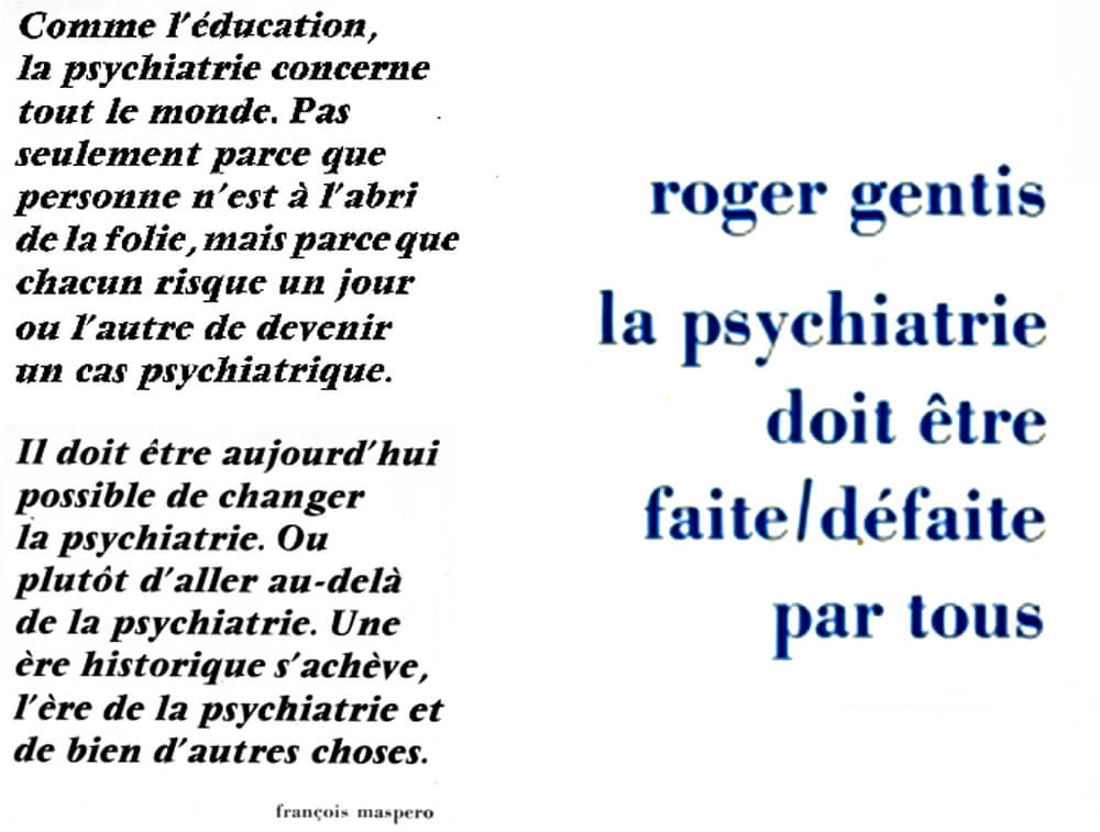 La psychiatrie doit être faite/défaite par tous, Roger Gentis (1973)